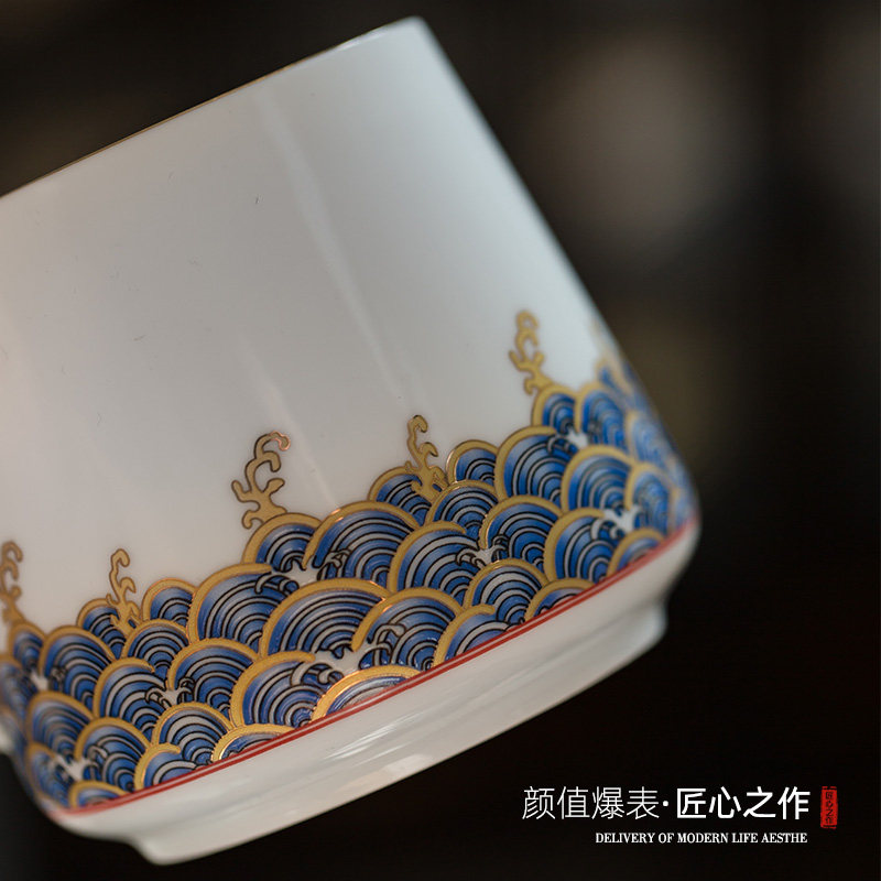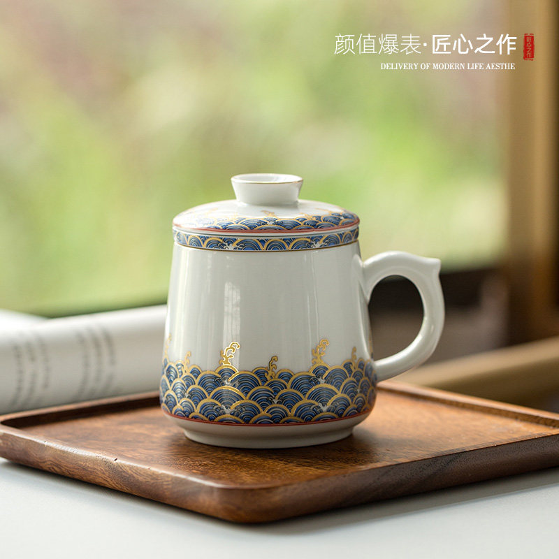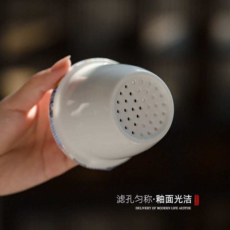 Filter tea cup with lid enamel water cup office ceramic tea cup tea water separation mug custom logo