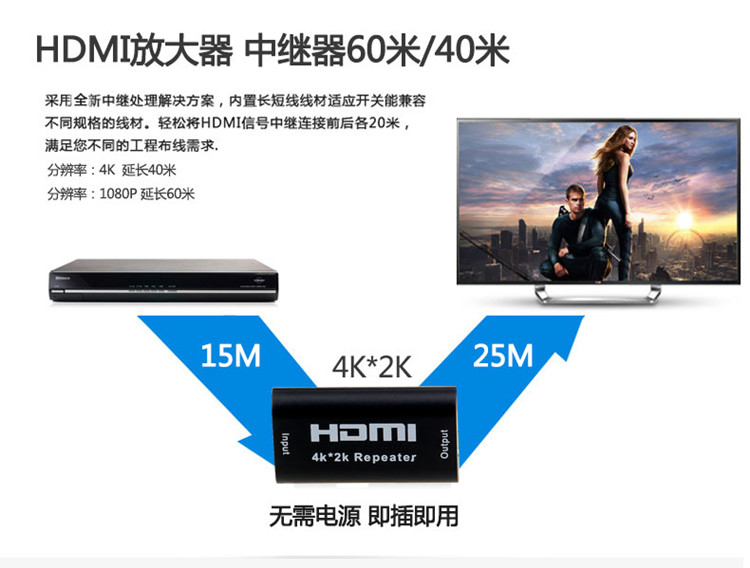 TV projector HDMI extension line HDMI signal amplifier straight through mother to mother HD repeater extender