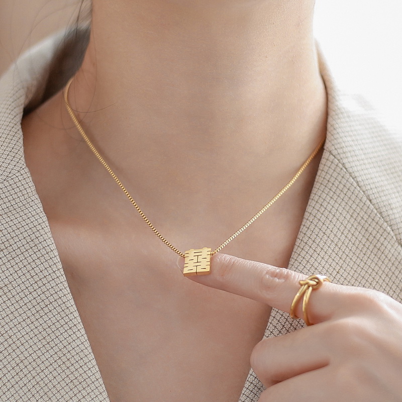 Biecki Necklace Woman Summer Sweater Chain Fu Character Joy Character Not Falling Out Color Lock Bones Chain Tennis Red sweater chain wedding engagement-Taobao