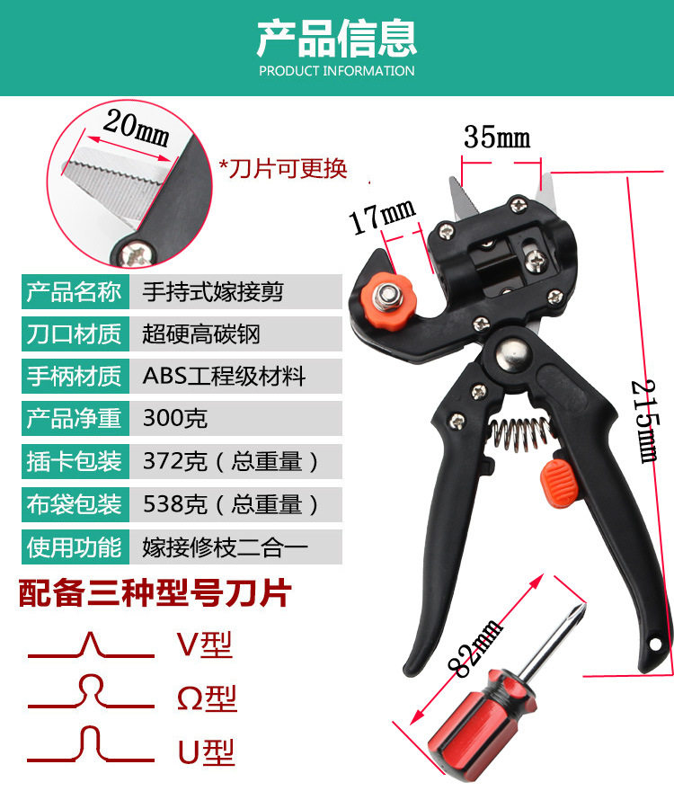 Garden tool Multi-functional grafting machine fruit tree grafting knife seedling wood grafting scissors with graft cutting grafting tool kit