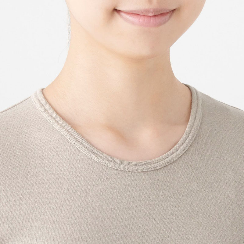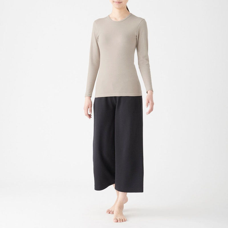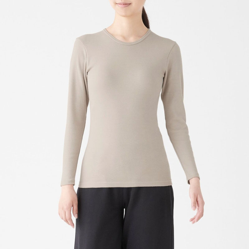 Unprinted Good Pink MUJI Women's cotton wool winter lingerie round collar long sleeve T-shirt