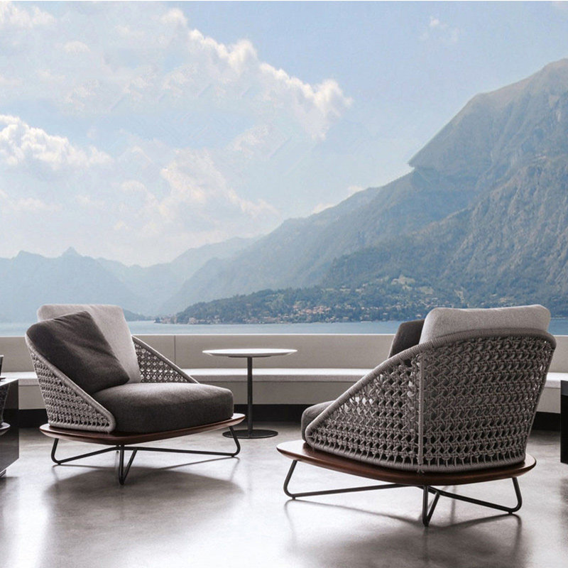 Outdoor rattan sofa solid wood single chair courtyard rattan sofa combination greenhouse balcony leisure Vine Chair
