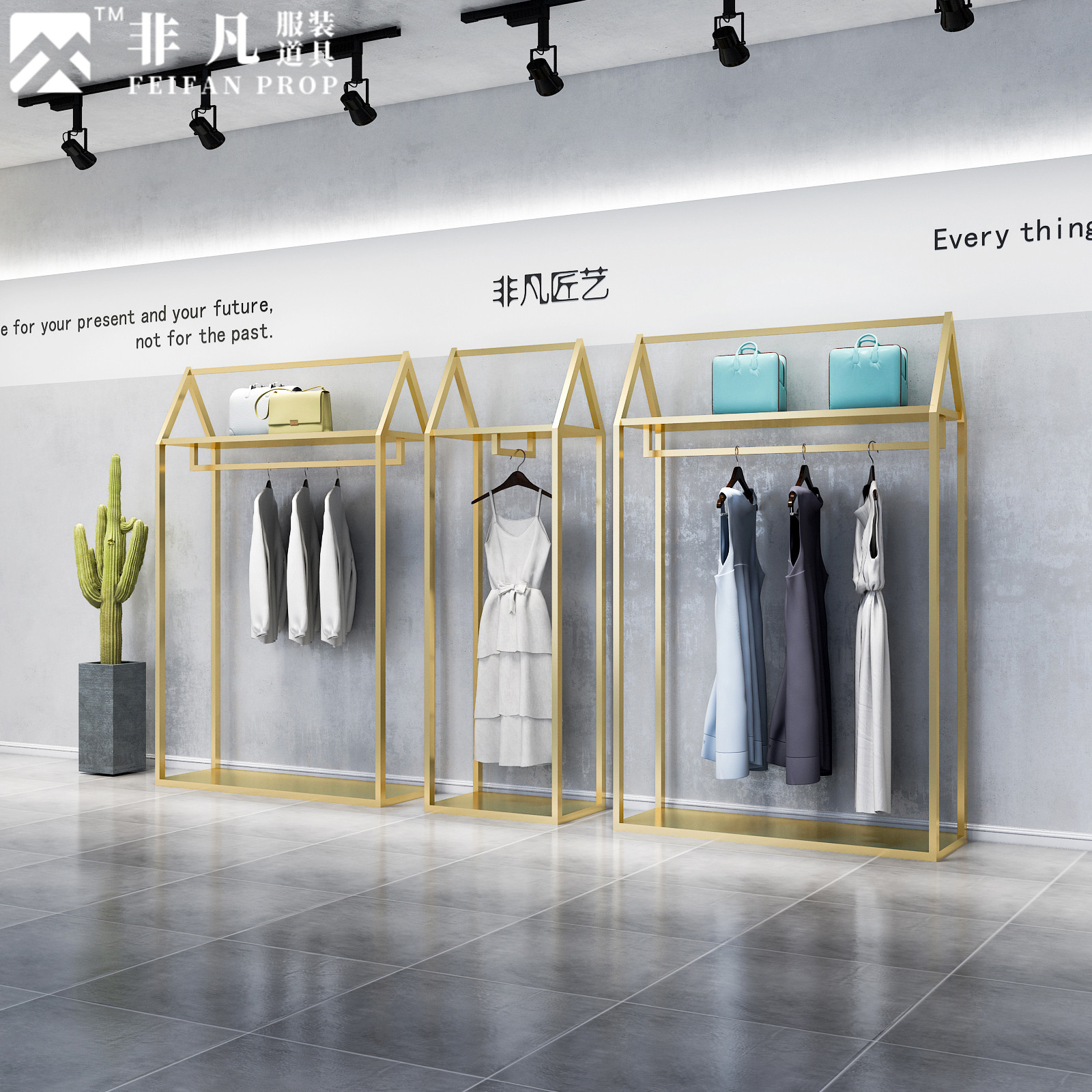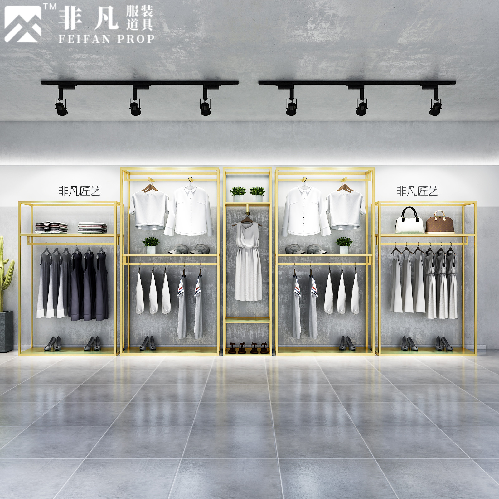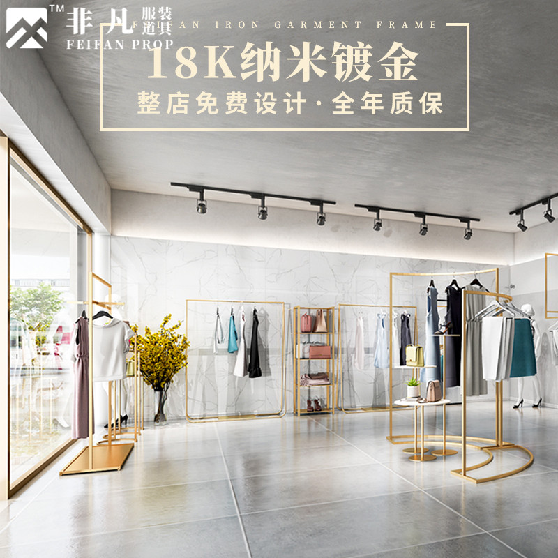 Clothing Store Show Shelf Floor Type Bilayer Iron Art Golden Display Frame Show and dress Wedding Dress for hanging clothes racks