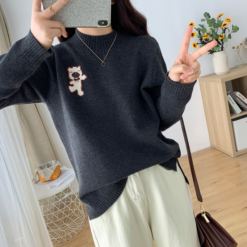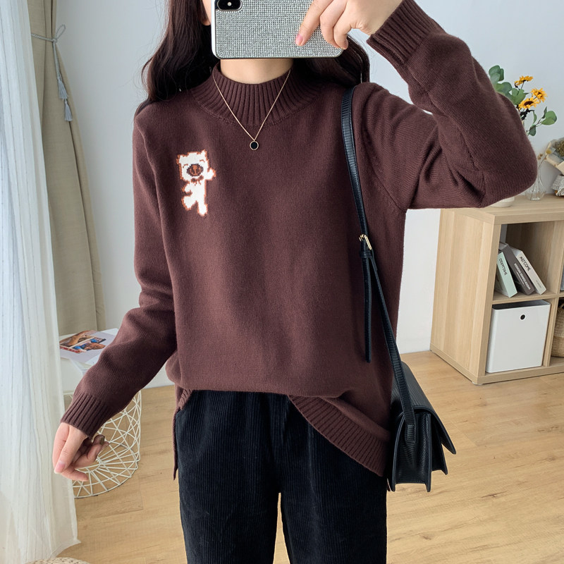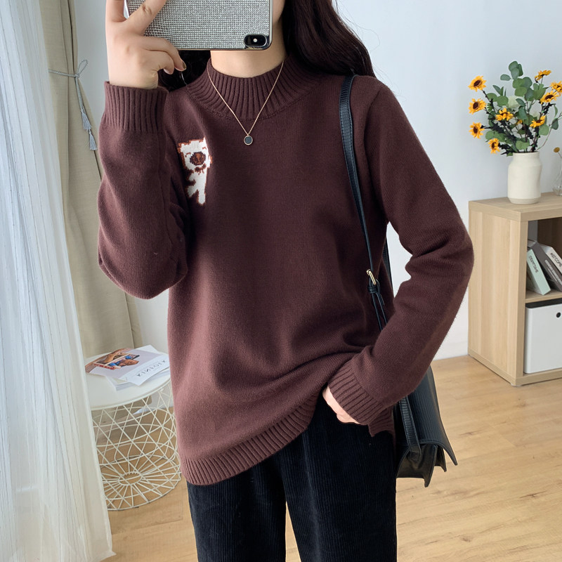 Large size women's autumn and winter new knitted sweater top 200 catties fat sister loose slimming bottoming sweater female top