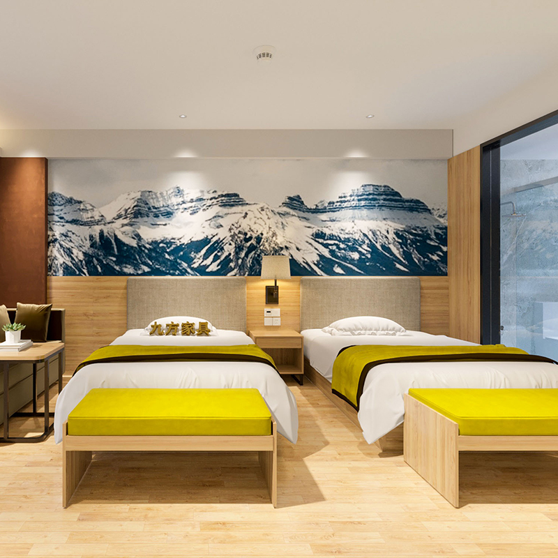 Hotel hotel furniture bed box standard room full set of bed frame soft package apartment homestay guest room double bed custom special bed