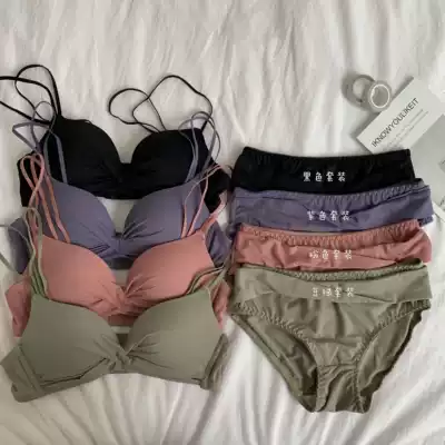 Summer 2021 new girly sense seamless underwear women without steel rings gather sexy back bra two-piece suit women