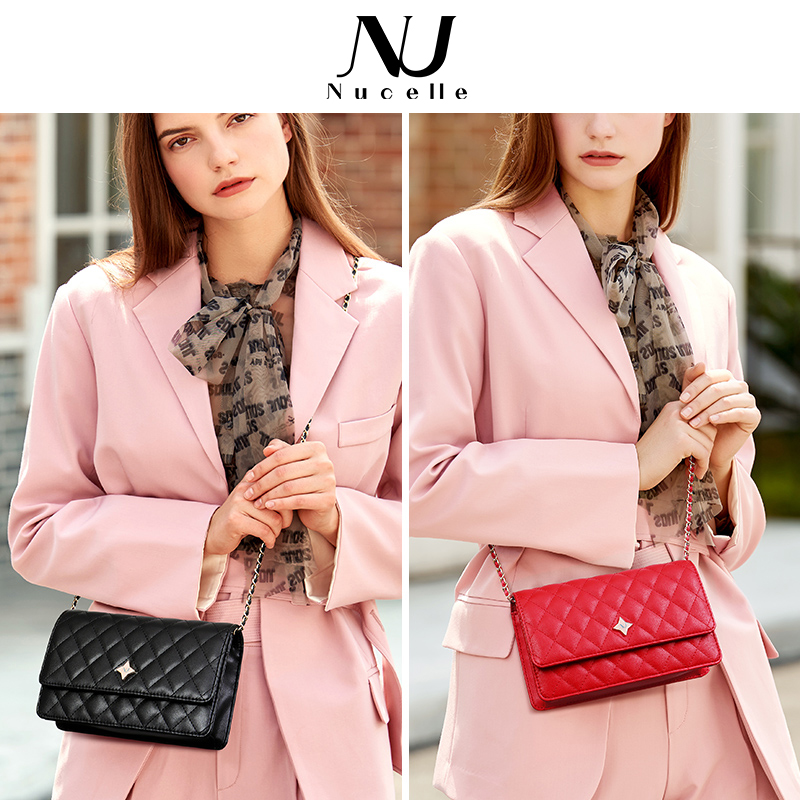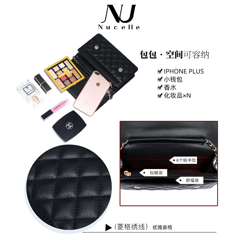 (Mall same section) New Sesame Lan Girl Bag 2022 New bag Genuine Leather Rhombus Chain Single Shoulder Bag Slanted Satchel