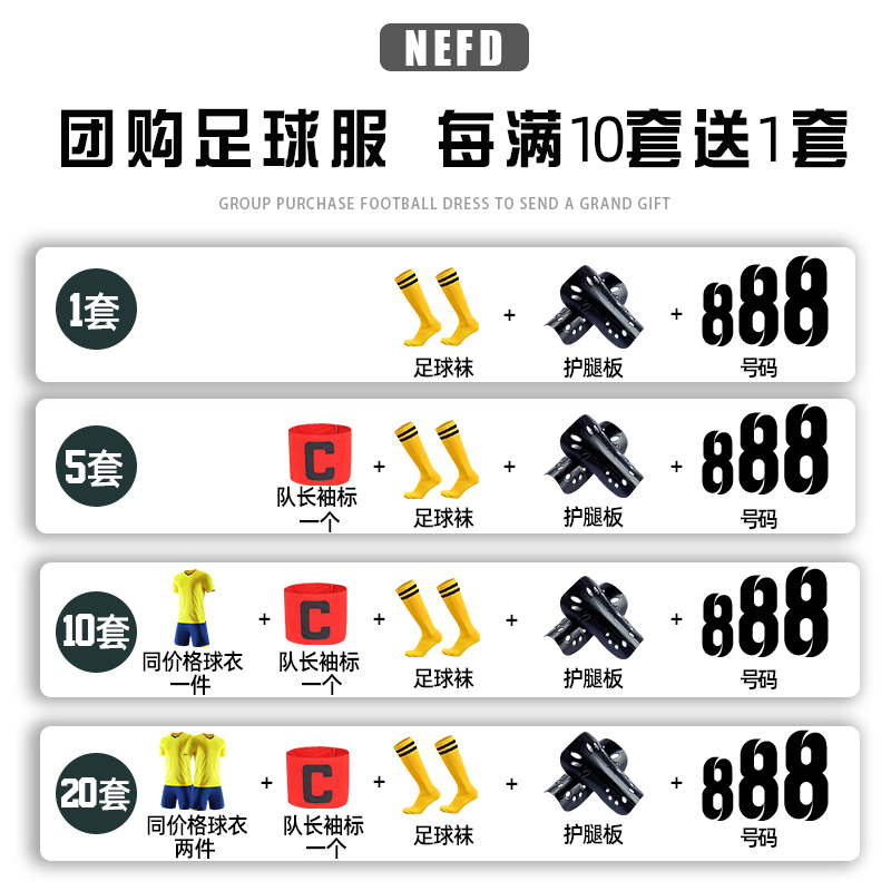 Football suit Men's customized student competition uniforms Children's football sports jersey boys football training clothes