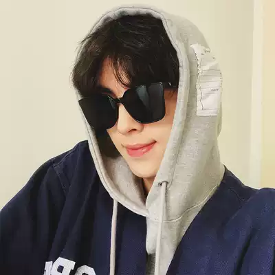 Star with black round face sunglasses female Korean version of retro box driving sunglasses male couple glasses