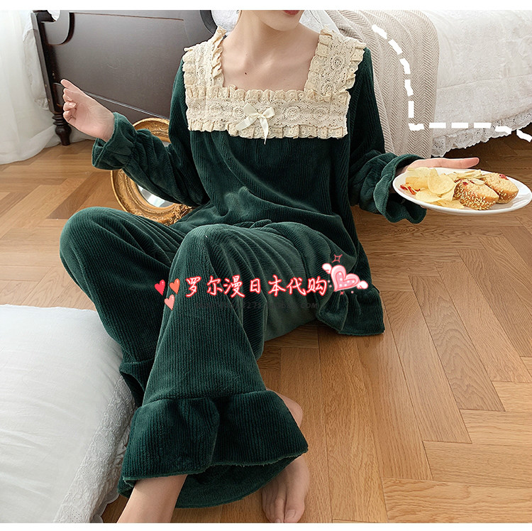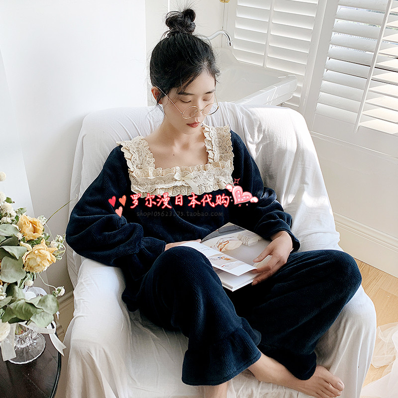 Japan soft honey pajamas woman autumn winter long sleeve trousers two pieces of suit princess wind home suit