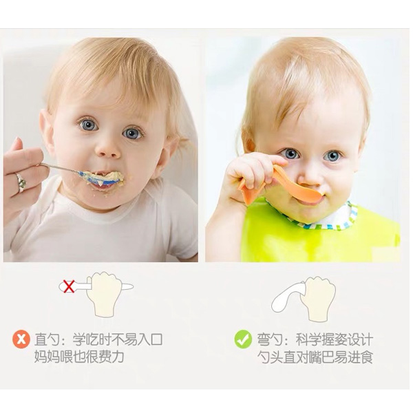 Baby spoon Baby learns to eat training spoon fork elbow less baby curved spoon crooked spoon Children's tableware