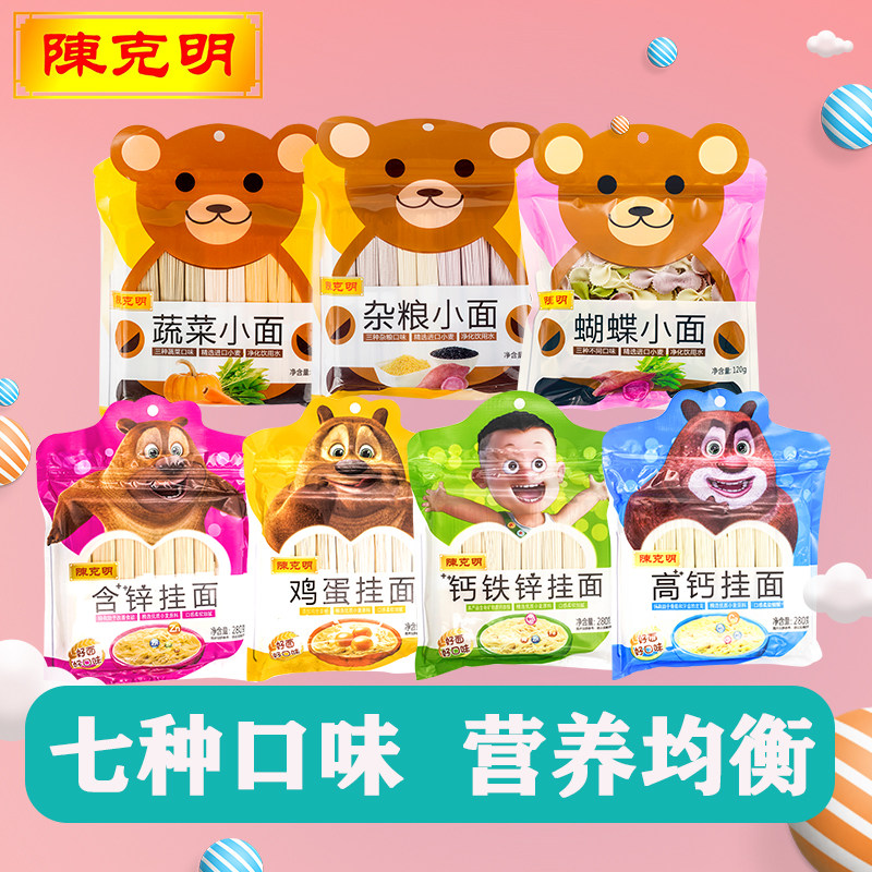 Chen Keming Children Noodles Calcium Iron Zinc Vegetable Miscellaneous Grain Eggs Butterfly Noodles Slim-shaped Baby Nutritional Hanging Surface Composition