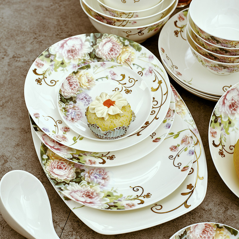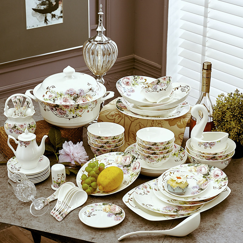 Creative Jingdezhen bone china tableware set 60 household bowls 10 people set housewarming gift European ceramics