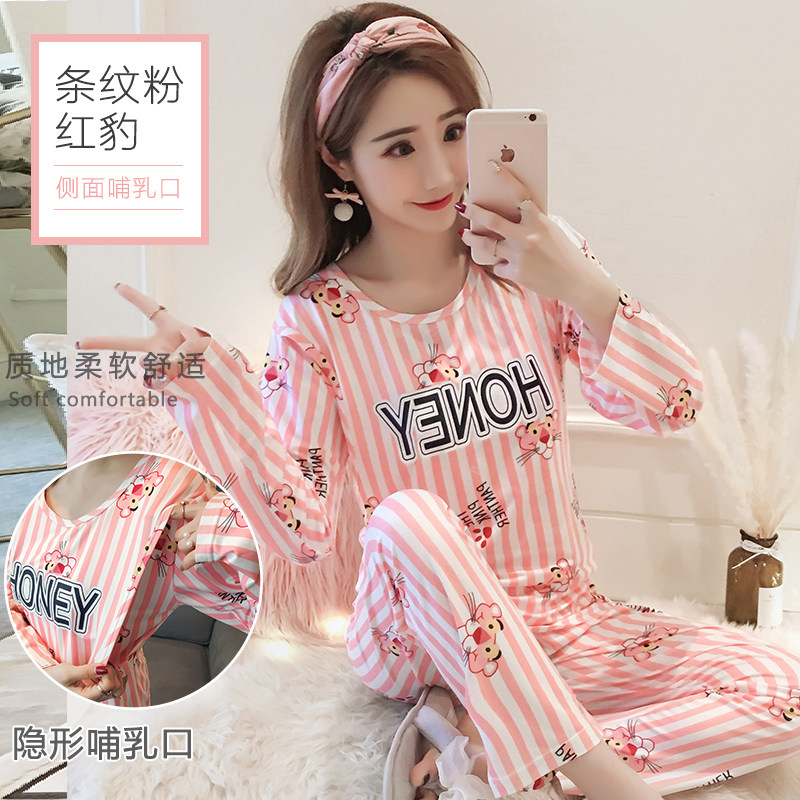 Lunar Subsuit Summer Thin postnatal suckling pregnant with late pyjamas Pregnant Woman Pyjamas Spring Autumn Pure Cotton Maternal Mordale Breastfeeding