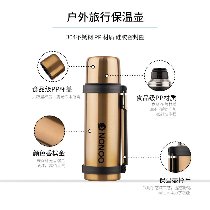 NONOO large-capacity stainless steel household heat keeper hot water bottle for men outdoor travel portable warm and warm kettle