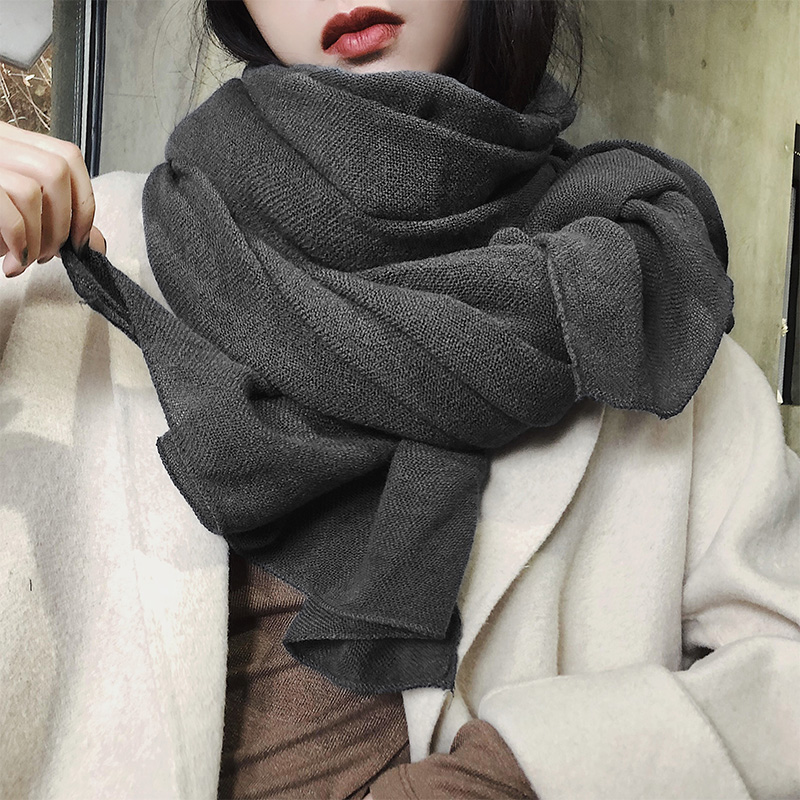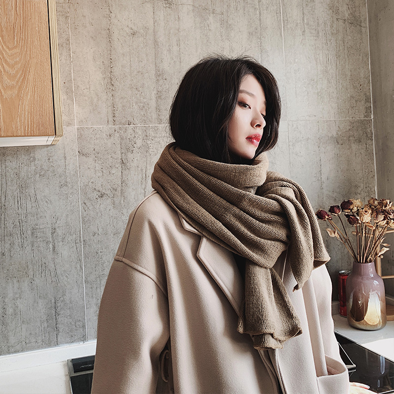 Korean Version Pure color knit wool line scarf for men and women autumn and winter imitation cashmere thickened warm surrounding neck 100 lap shawl tide