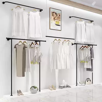 Golden Marriott clothing store display stand on the wall hanging ceiling hanging gold hanger hanging clothes pole Wall wall hanging clothes shelf