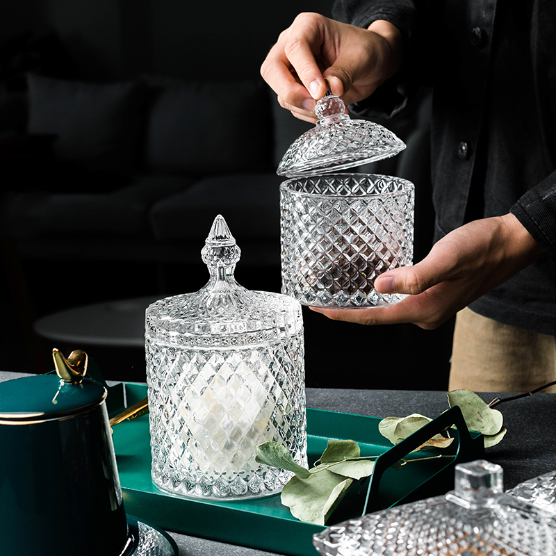 European crystal glass candy jar household dried fruit nuts tea storage jar creative colorful life colored glaze yellow