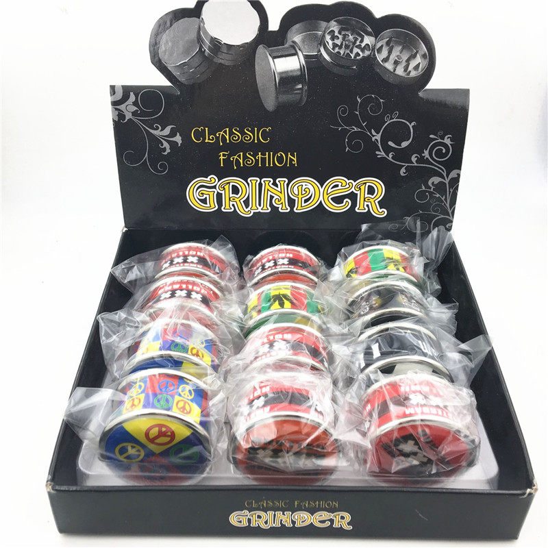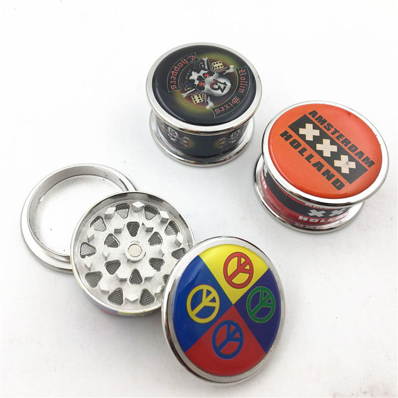 PUV Sticker Painted Metal Grinders 42mm Zinc Alloy Tobacco Herbal Herbal Grinders 3 Floors Mini version of cigarette lighter