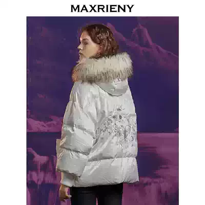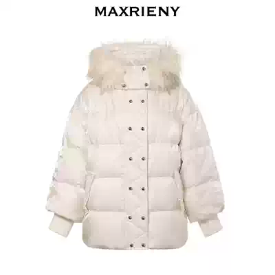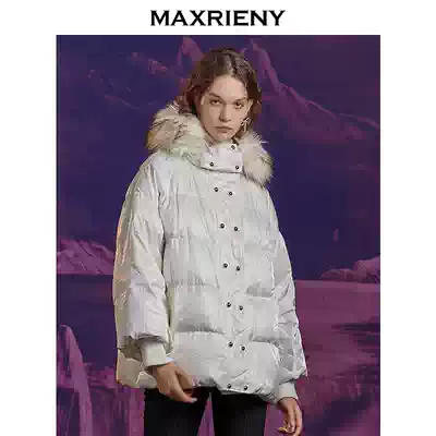 MAXRIENY winter New Fashion white duck down jacket thick loose double-breasted straight long sleeve coat women