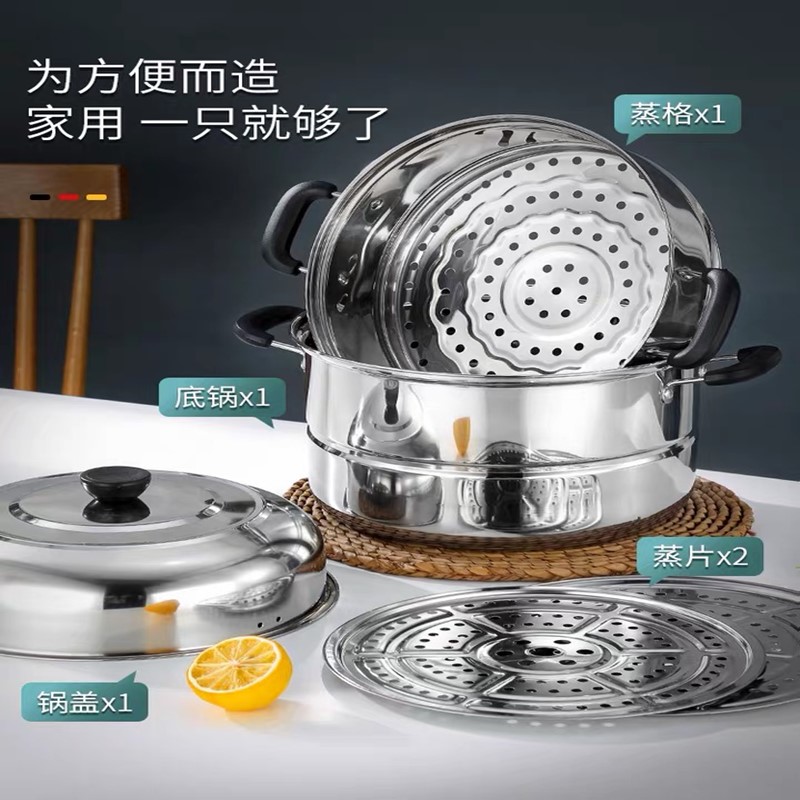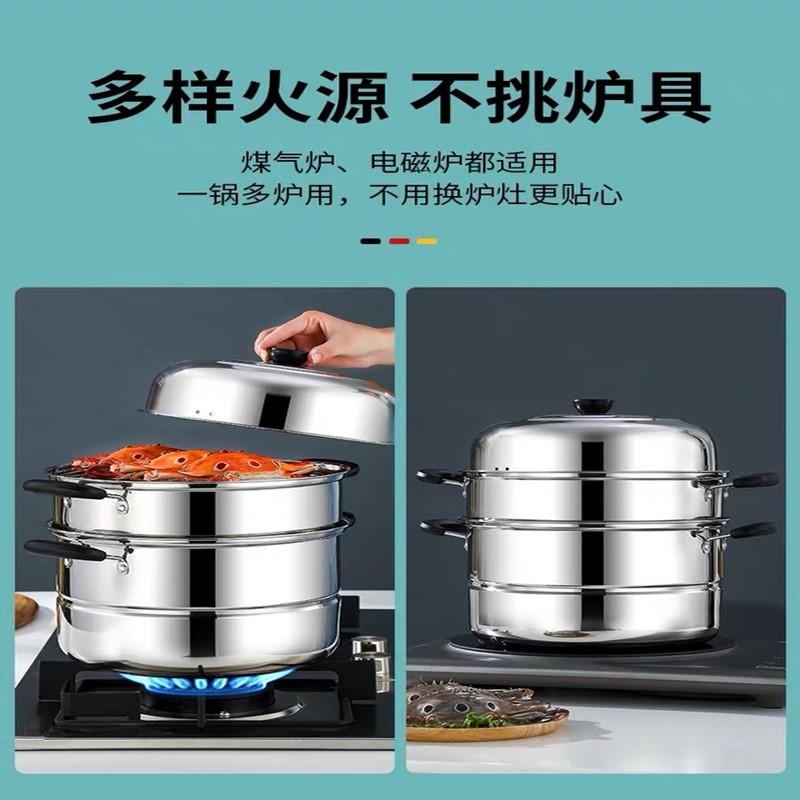 Stainless steel steamer three 3-layer multilayer steamed bread of the steamer lattice thickened layer-4 household gas stove with dian ci lu guo