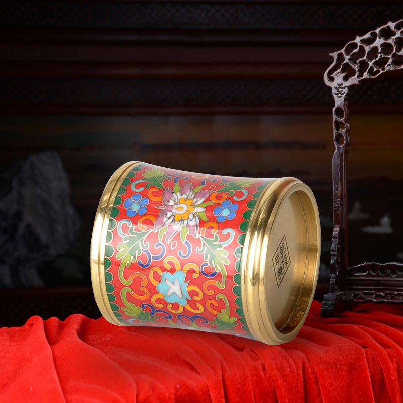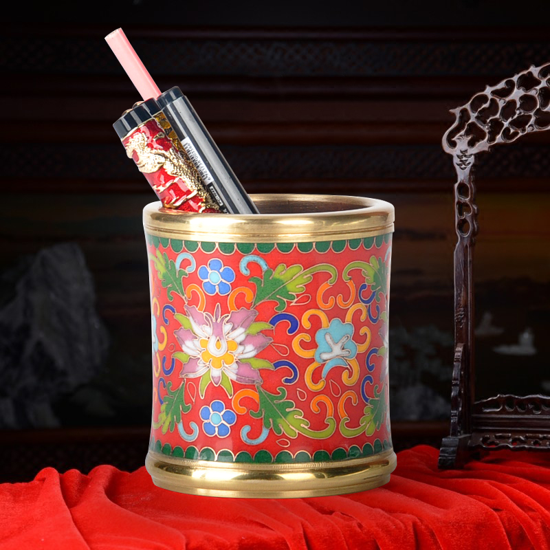 Beijing copper tyre thick tire pinch enamel Jingtai blue pen holder Practical gift China Wind abroad to send old foreign gifts