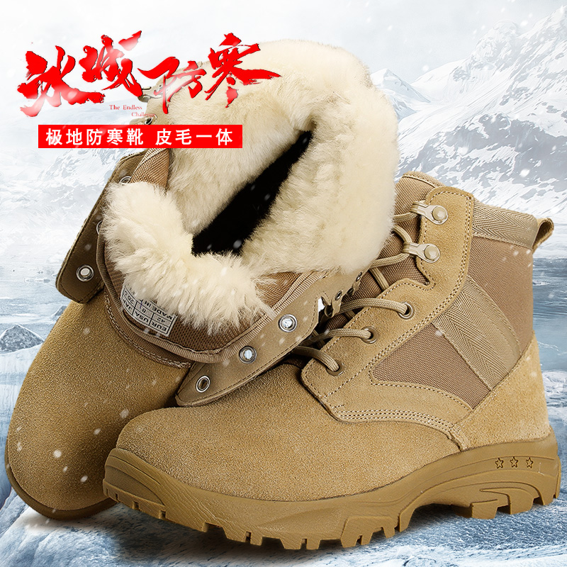 Winter wool Martin boots male leather hair integrated middle cylinder cotton shoes Snow ground boots thickened warm northeast cotton boots Anti-cold shoes