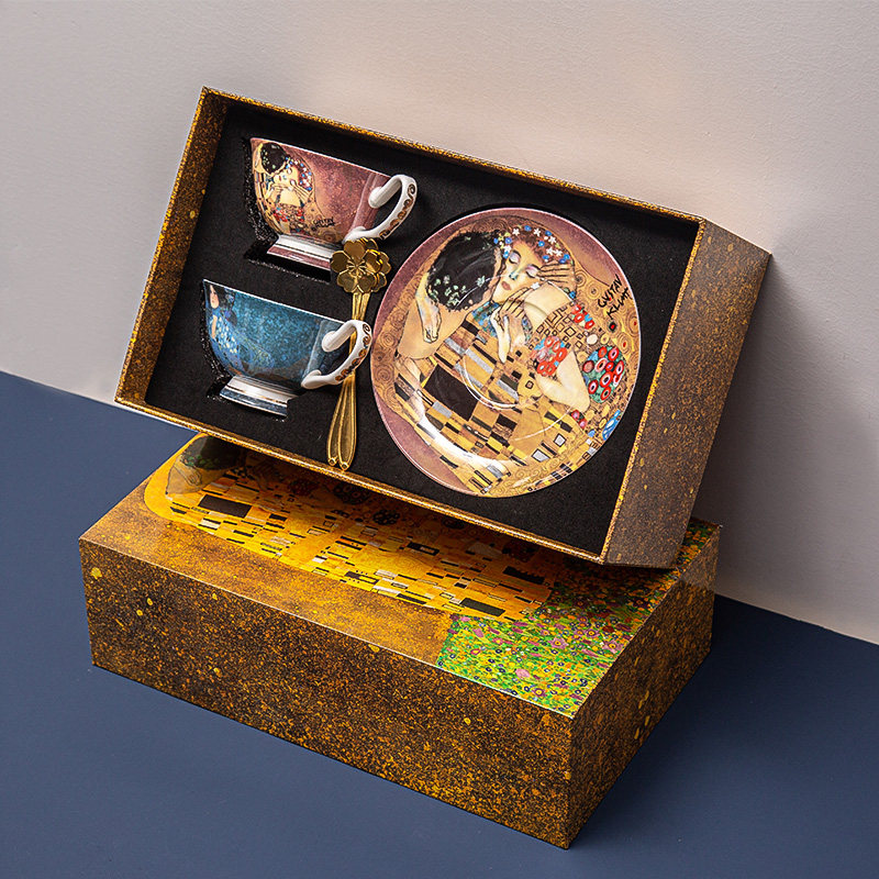 Gold Leaf Kiss Forogi 2 Cups 2 Disc Kiss Gift Box Dress With Hand Bag With Golden Cherry Blossom Spoon