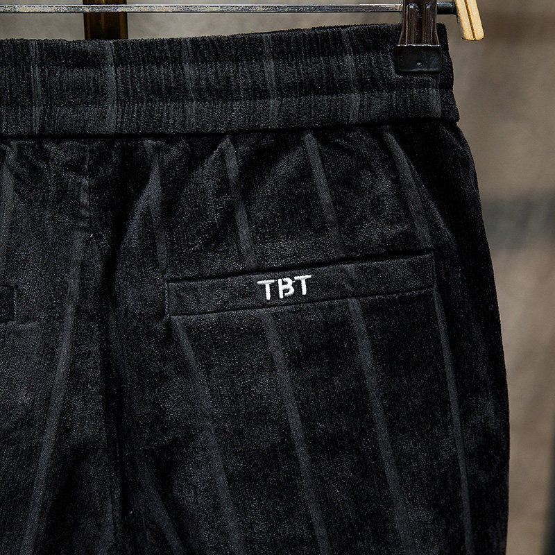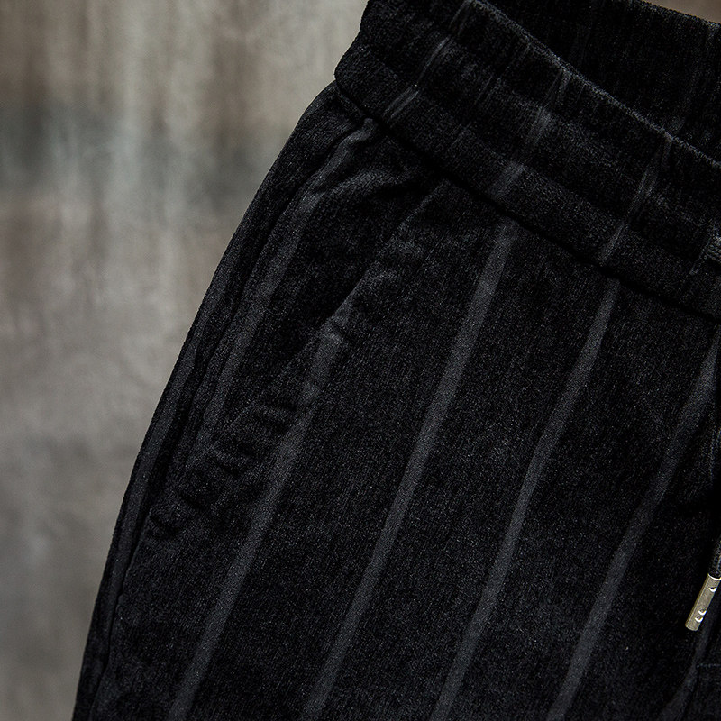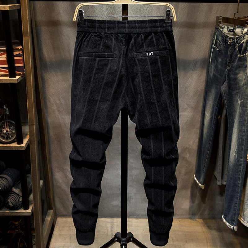 Male Pants Autumn Winter Style Bunches Casual Pants Men's Body Smoke Tubes Pants Han Version Trend Winter Thick-style Striped Sports Pants