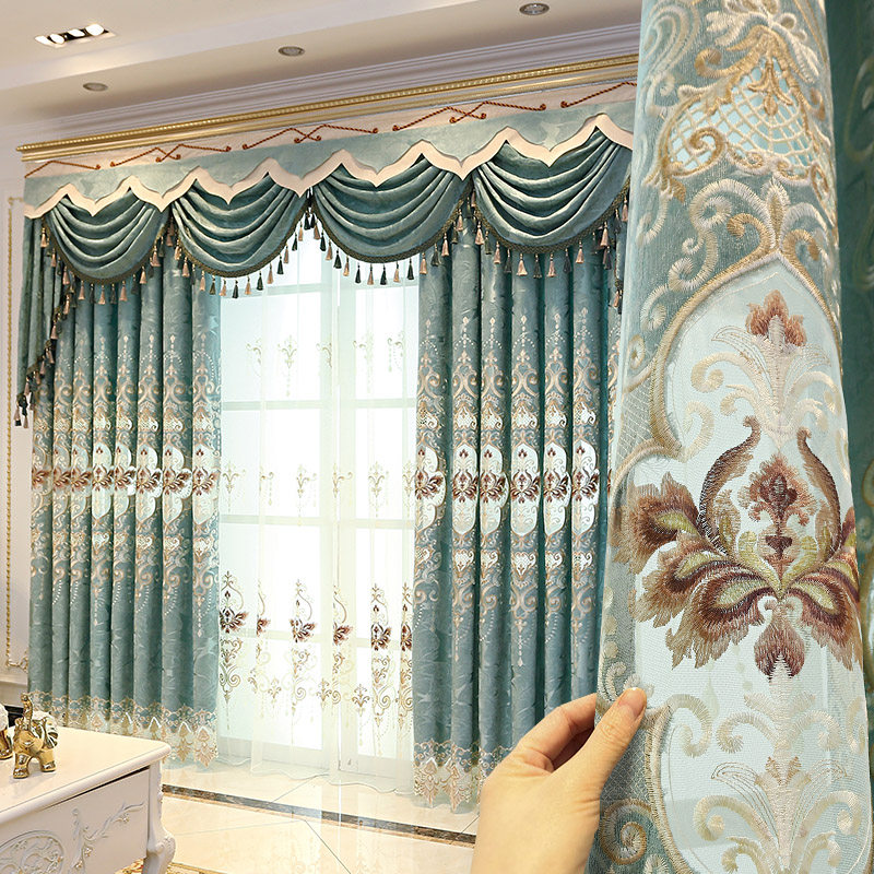 Light luxury luxury high-end living room bedroom European-style curtains embroidered shading floor-to-ceiling atmosphere simple modern palace