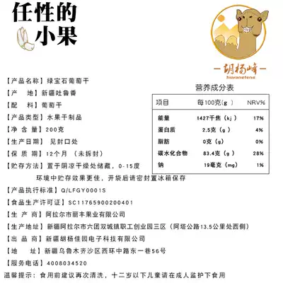 Hu Yangfeng Xinjiang Turpan Emerald raisins disposable 1000g dried fruit casual office snacks