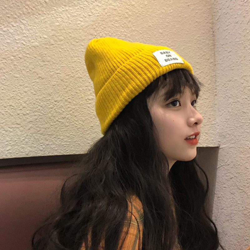 ins Net red letter patch wool cap Japanese male Joker plus velvet thick warm knit hat children Korean autumn and winter