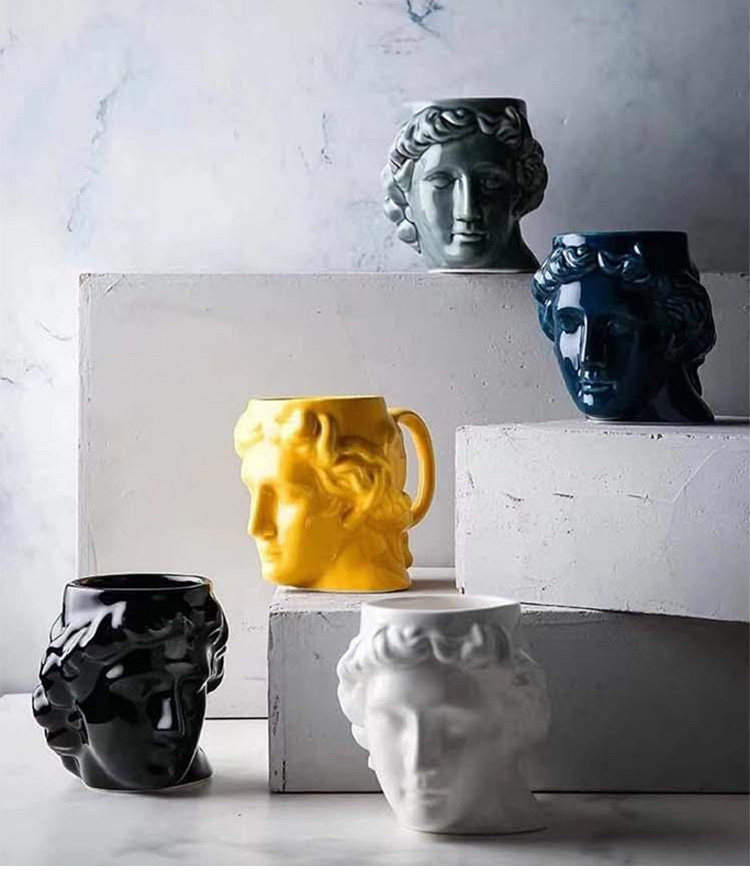 Creative personality special-shaped large-capacity ceramic water cup Apollo statue mug coffee latte milk cup