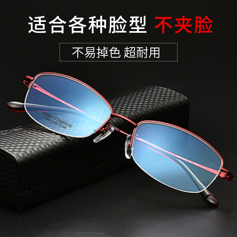 Phil Watanabe ultra-light pure titanium half-frame myopia glasses frame ladies can be equipped with large face anti-blue light eye frame 5489