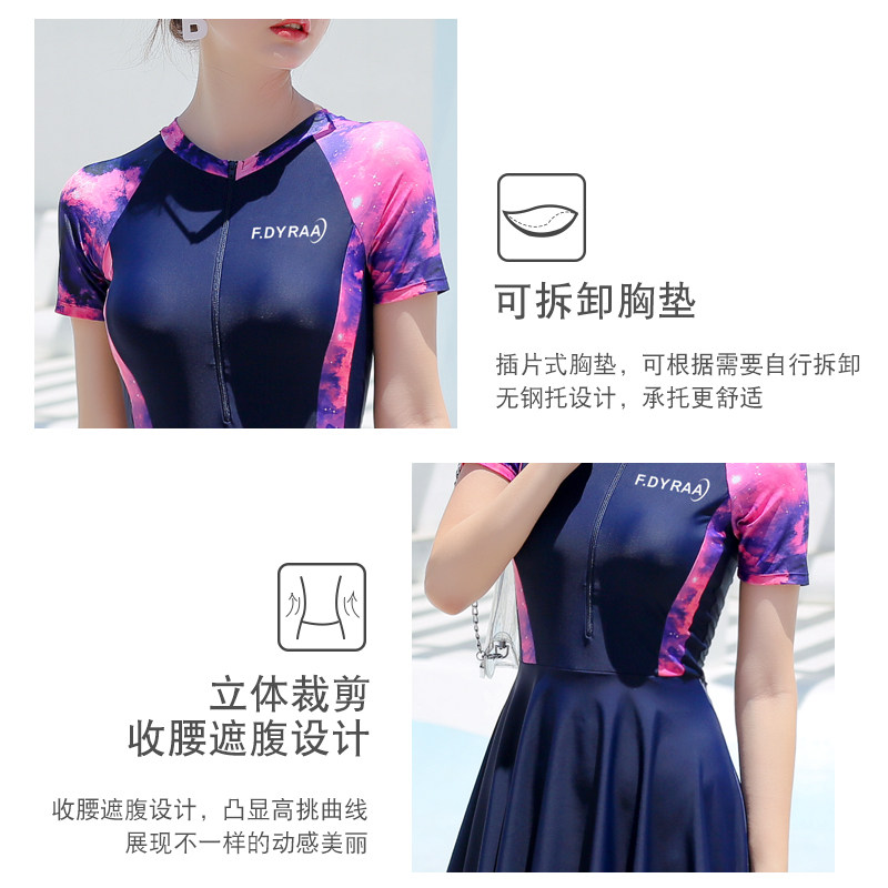 Purple one-piece dress-short sleeve blue one-piece dress-short sleeve purple-short sleeve phone bag blue-short sleeve phone bag purple-short sleeve three sets (swimsuit swimming goggles swimming cap) blue -