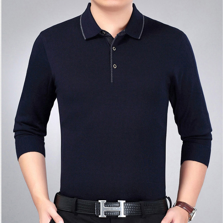 Old lord car long sleeve T-shirt male thin wool knitted sweatshirt pure color loose clothing autummy jacket in old age T-shirt