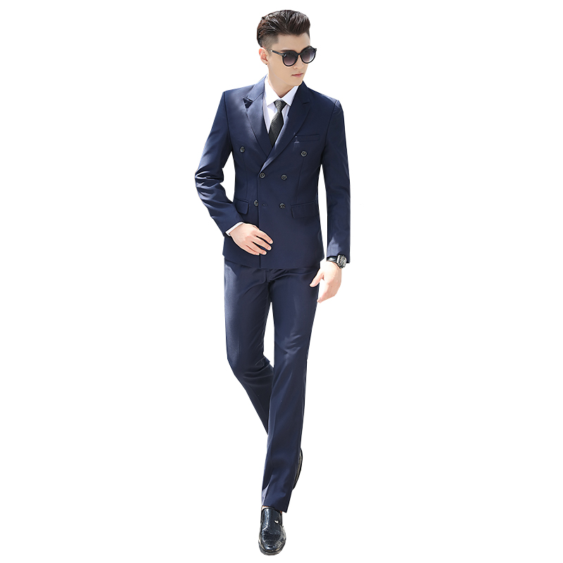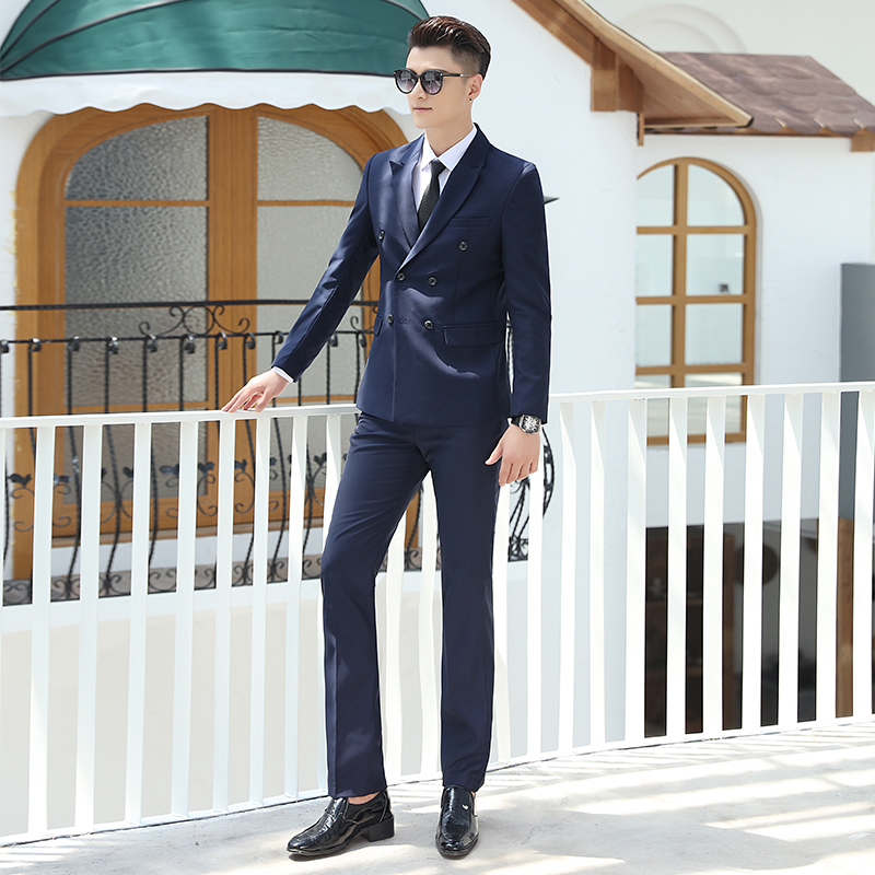 Hot selling costumes men's suit suit stage photo studio photo dress slim navy double breasted Korean suit