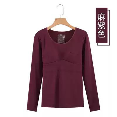 Plus velvet warm top female De velvet with chest pad no bra Cup one-piece long sleeve interior base shirt autumn and winter