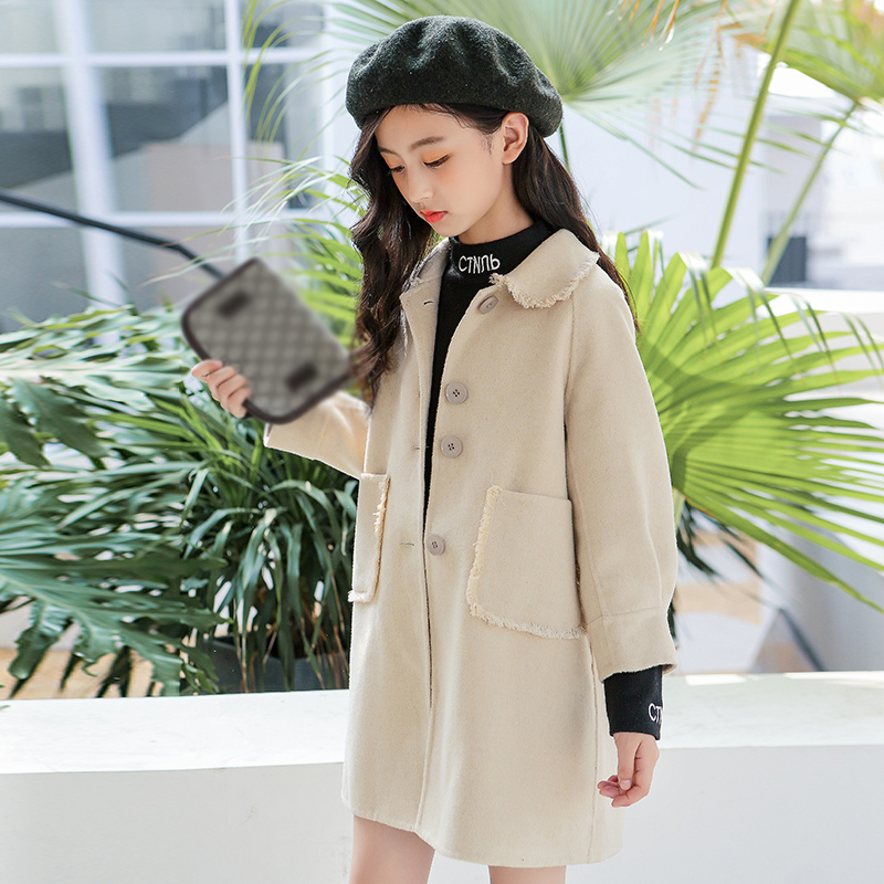 Girls double-sided cashmere coat 2022 new style foreign spring and autumn tweed in the big boy children's wool wool coat