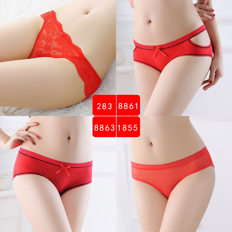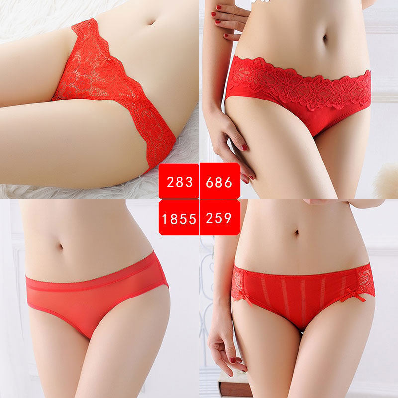 4 dress Ben year lady's underwear Red Wedding Transparent Lace Embroidered low waist Female slim triangular trouser head