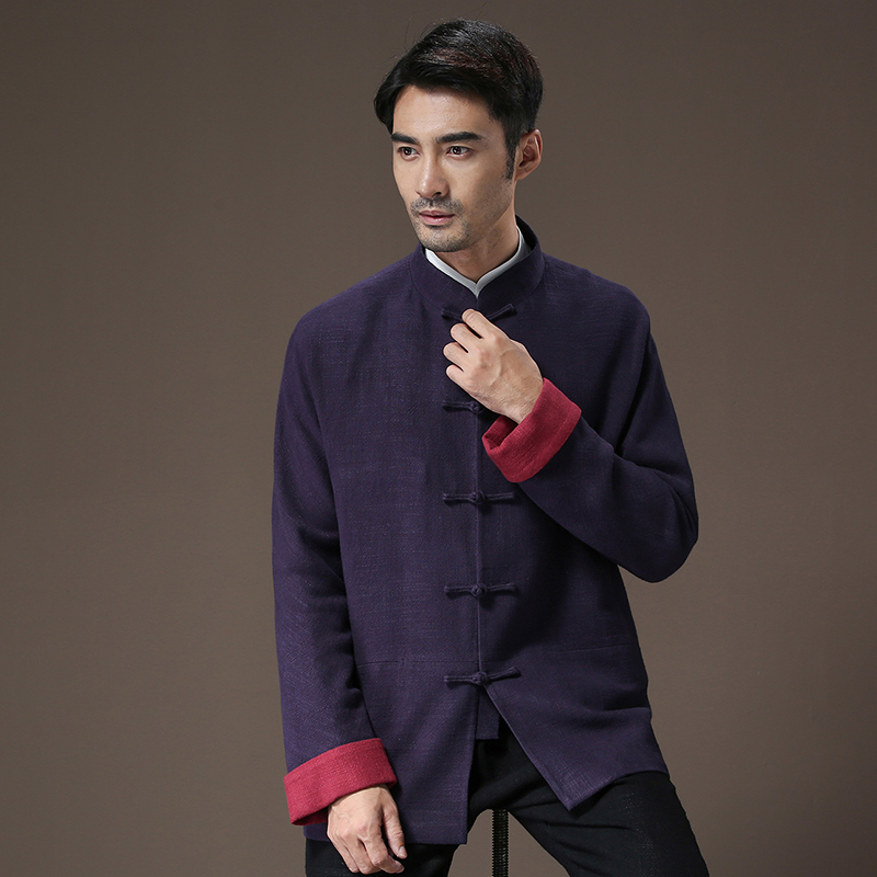 Tang dynasty men's Chinese-style long-sleeved jacket young and middle-aged cotton and linen spring and autumn men's Chinese style vintage disc buckle Hanfu top