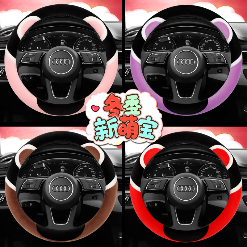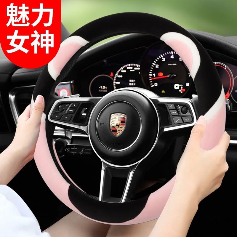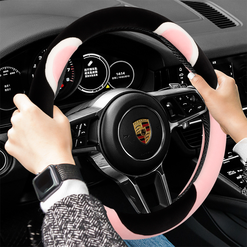 Steering wheel cover winter short plush female Korean cute cartoon winter warm non-slip four seasons steering wheel cover