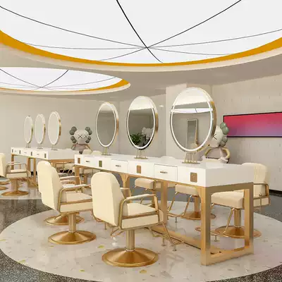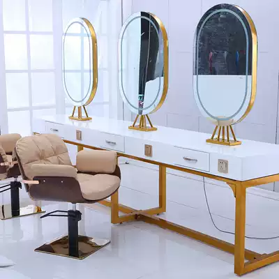 Net red hair salon mirror table Hair salon cabinet one-piece hair salon special tide LED touch mirror hot dyeing table