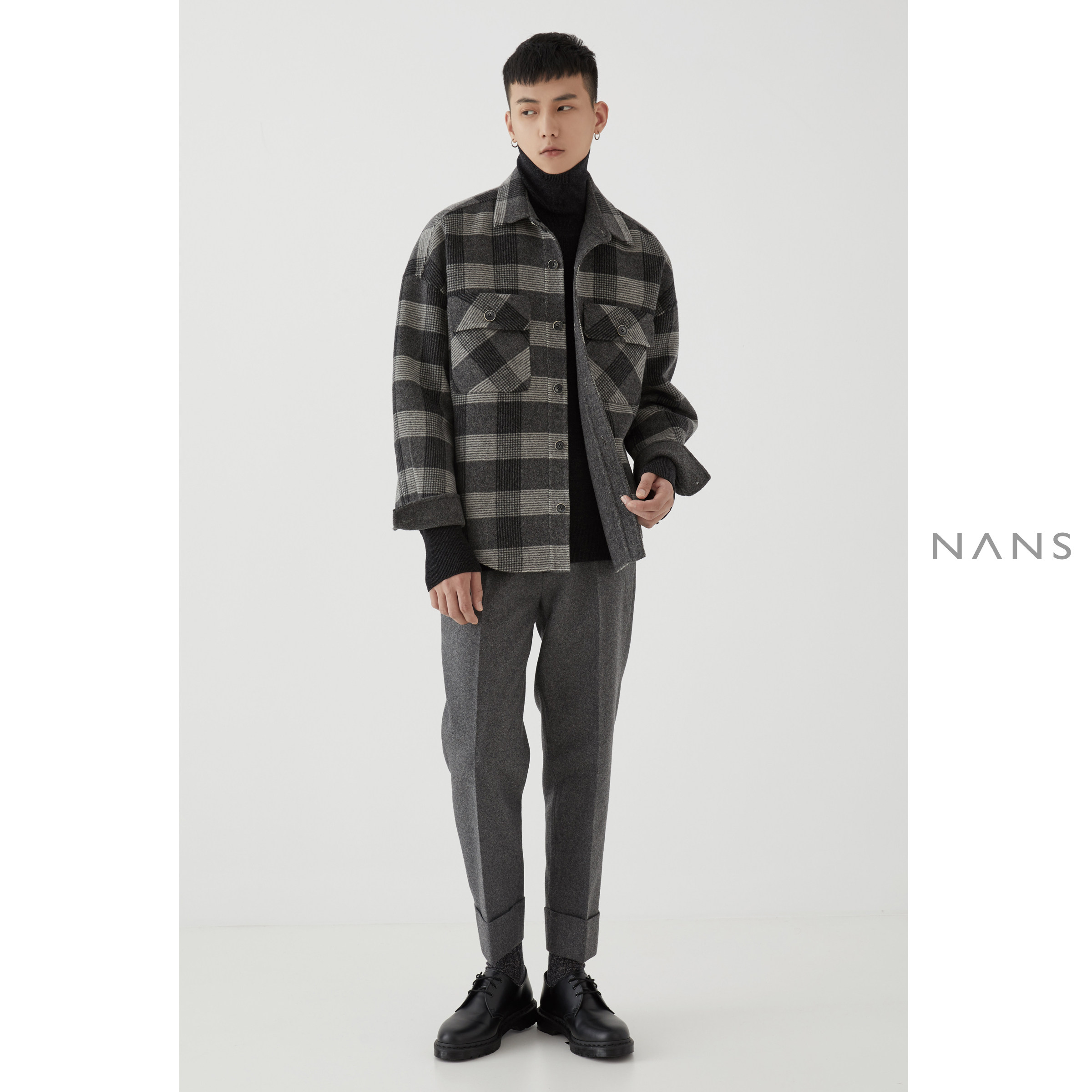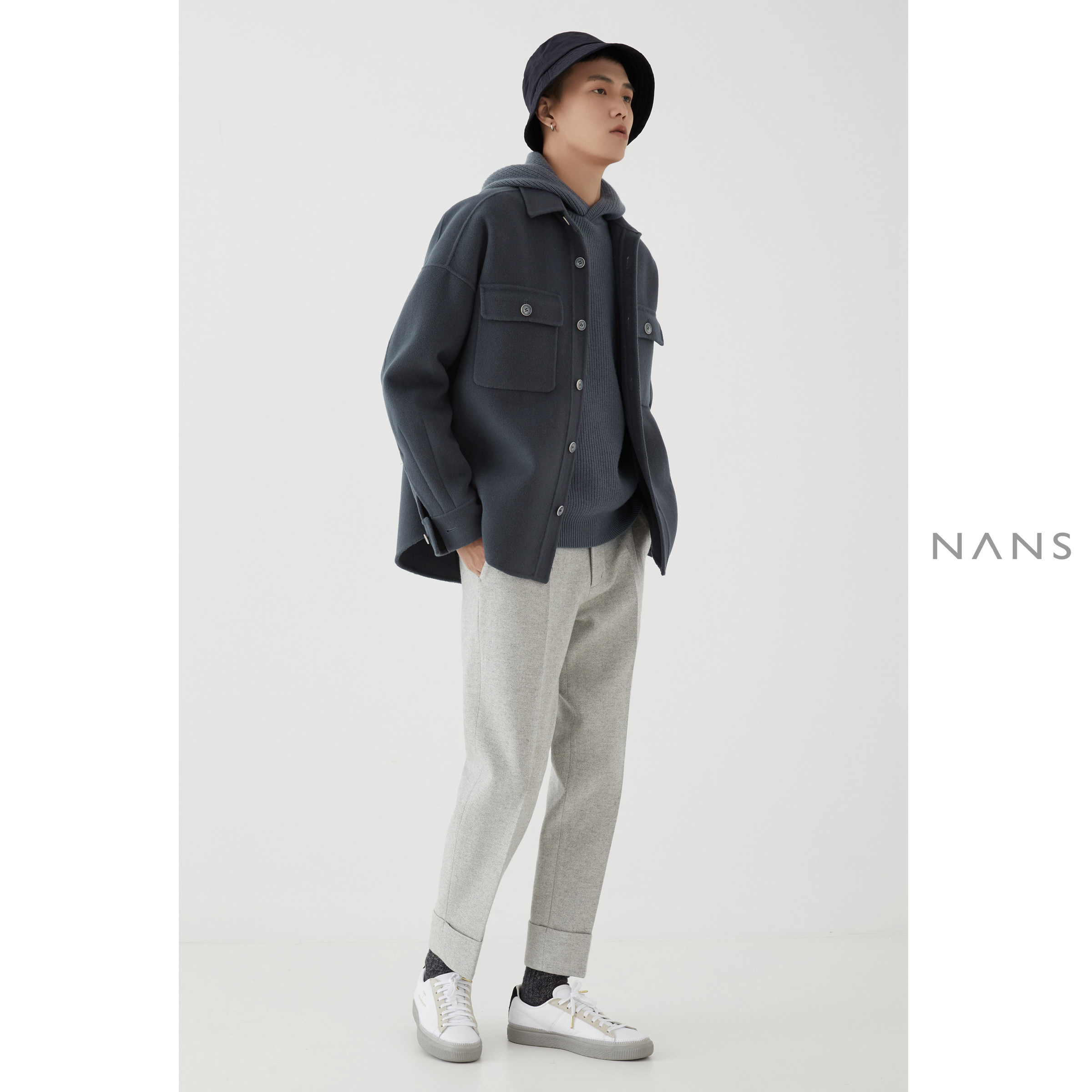 (NANS) big pocket shirt type profile double face jacket OVERSIIZED WOOL JACKET