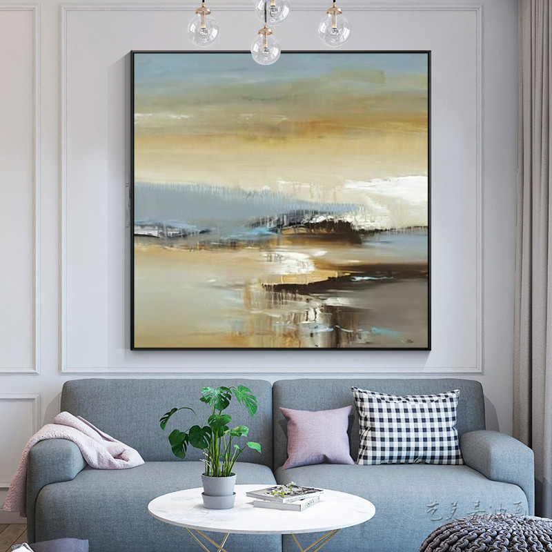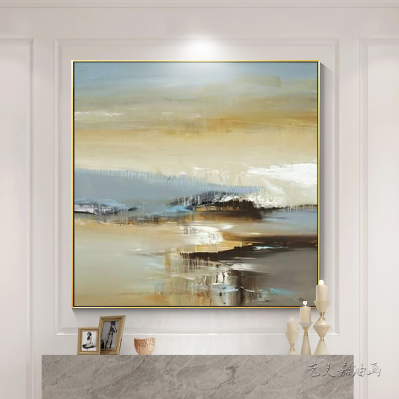 Yimeijia abstract landscape oil painting Modern simple Nordic style light luxury guest dining room entrance decoration Pure hand-painted wall hanging