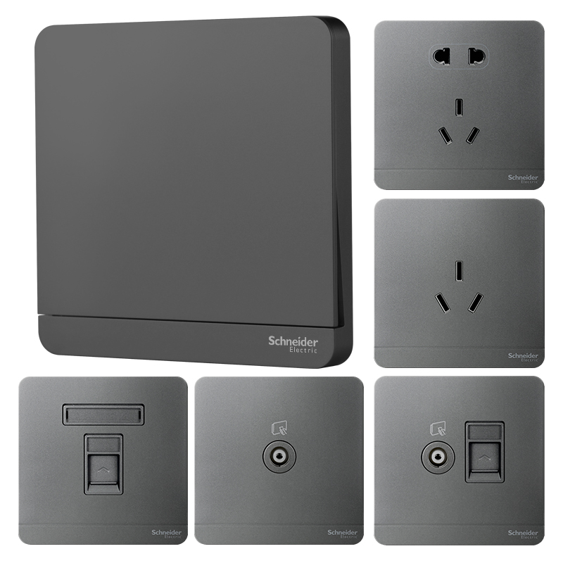 Schneider switch sockets Inches of champs Schneyschneider Five-hole socket open double cut LED switch panel socket