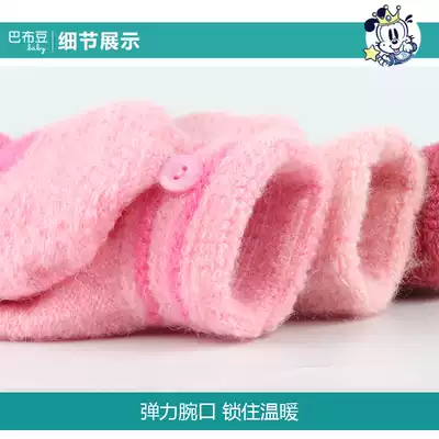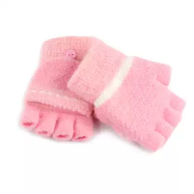 Children's gloves winter thickened warm cute girl five-finger clamshell wool toddler baby girl half-finger gloves