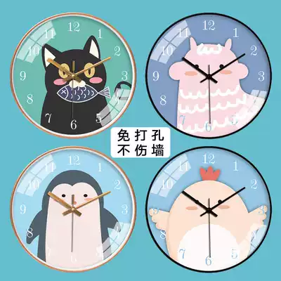 Modern simple fashion hanging table cartoon cute little animal cat wall clock living room children's room silent clock clock clock clock