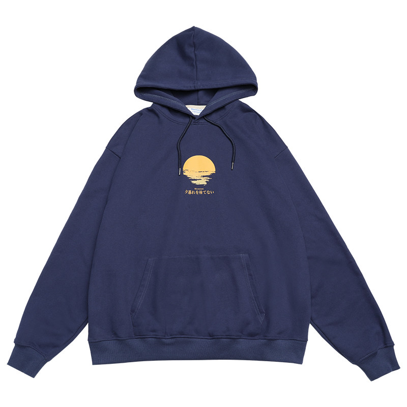 Mr Montmartre Japanese retro sunset printed hooded sweater autumn and winter wild men and women couples plus velvet hoodie
