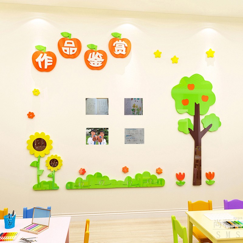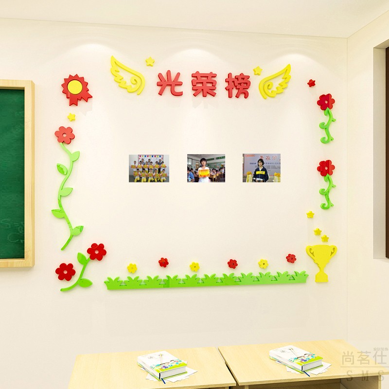 Primary school class bulletin board Honor 3D stereo wall placing cultural wall decoration learning park sticker